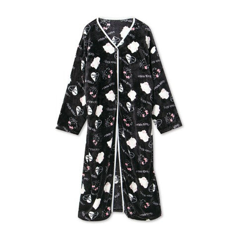 A very cute Hello Kitty long-sleeved dress that feels great against the skin. It's a cute item that can be worn over pajamas as a robe or as loungewear. The dress is open at the front, so it's comfortable. The back pockets are cute too. The fabric is soft and warm, and has excellent heat retention and comfort.