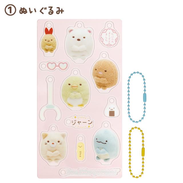 This is an acrylic keychain set of San-X's hugely popular character "Sumikko Gurashi" ☆ It's a set of lots of acrylic parts that can be used to arrange your keychains, or you can use them by threading them on the included ball chain for a cute look ♪